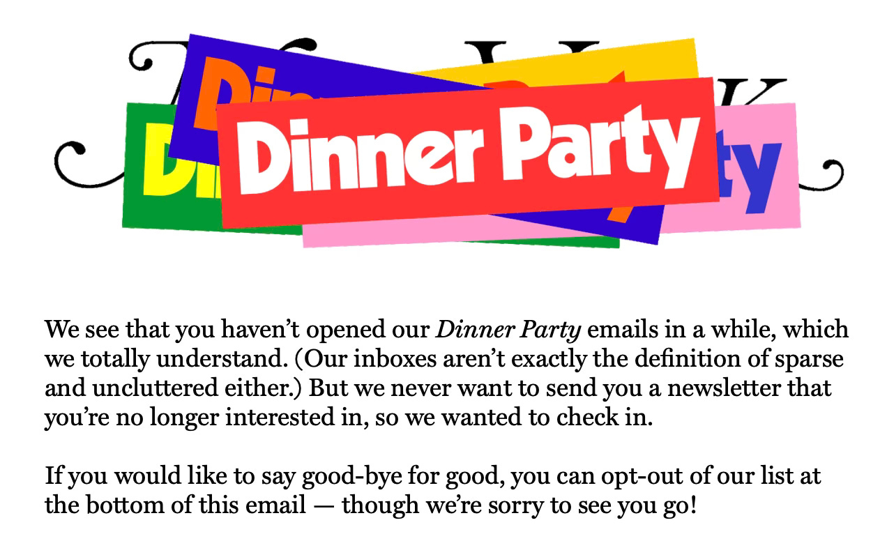 I’m noting it all because I got this from New York Mag’s “Dinner Party” newsletter this week: